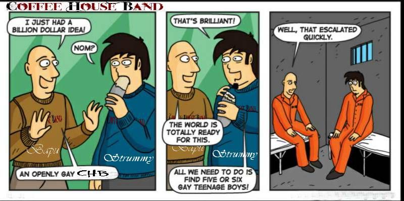 You should have a guy with a bass guitar around his neck polishing off a beer or something. That would a new CHB song.