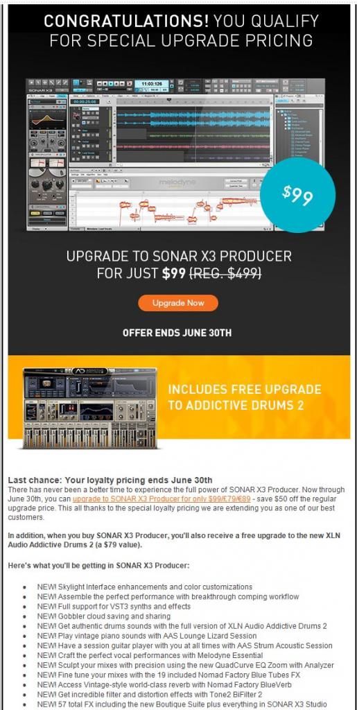 I saw a nice video about Addictive Drums 2 on the Cakewalk FB feed and it looks like it comes with X3 Producer now. I've been a producer user since it first came out. Will there be an upgrade available for existing producer users?