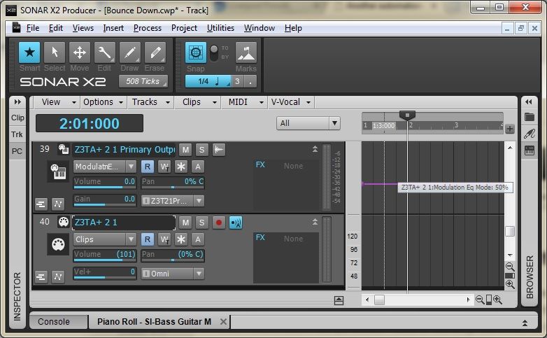 Well that's weird. Last night, my automation tooltips were showing things like "Reaktor5: EnFo..Cutoff.." I open the project this morning, and the tooltips are displaying in full like yours. Could this be a Windows related thing, in that Tooltips are a system wide setting and something was happening on my computer last night which made all of them shorter? It's not the first time I've been frustrated by shortened Tooltips in automation lanes. Also, what's the deal with automation parameter units in Sonar? How come they don't always seem right? For instance, last night the parameter I mentioned above was showing units of 0 - 200 in the automation lane. This morning, it's showing 0 - 100%. And what's with the number in the box with the parameter slider (to the immediate left of the automation lane)? The manual says that "The slider position represents the current value of the envelope" - which it does, but the number in the corner of the box rarely represents the actual value of the envelope. For instance, in the lane I'm working in now, that value is stuck on 80. It doesn't matter if I move the slider up or down, or what the current value of the envelope is. It stays at 80. Is this a bug, or am I misunderstanding what this value is supposed to represent?