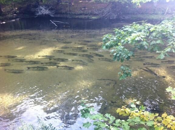 offnote digi2ns oops Salmon starting the run up the rivers here in Michigan Woohoo great view! just get into the water and open the net :)  The game warden would love that, they would hang me out to dry. This is a smaller river north from me. The launch ramp and river Im on is much largerr (Chest high waders wont work-Gotta take the boat) but I DO have a good net LOL