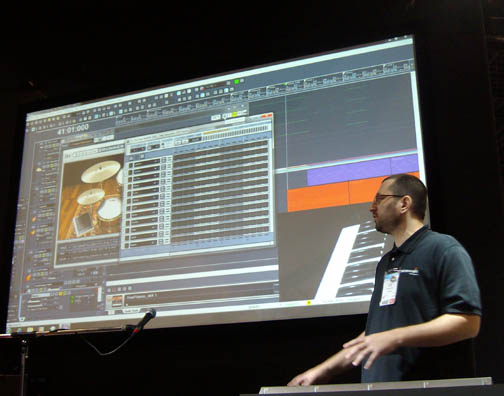 Seth giving the standard Session Drummer / Step Sequencer demo. No matter how many times I see these demos, I always manage to learn something new. Seth showed a nifty trick of using the step sequencer to build multiple drum parts and lay them out as track layers. All I ever do with the step sequencer is quick 'n dirty click tracks, which doesn't really do the tool proper justice. It's capable of so much more.