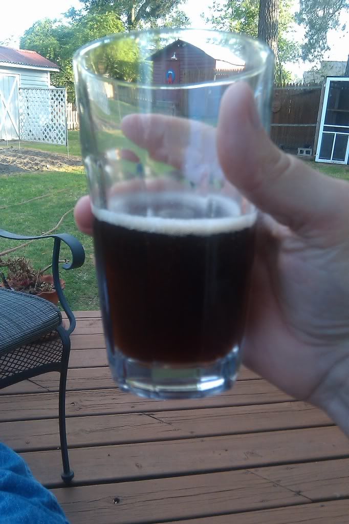 A careful slow pour is required to avoid a 1" or more head. You can see how dark this brew is.