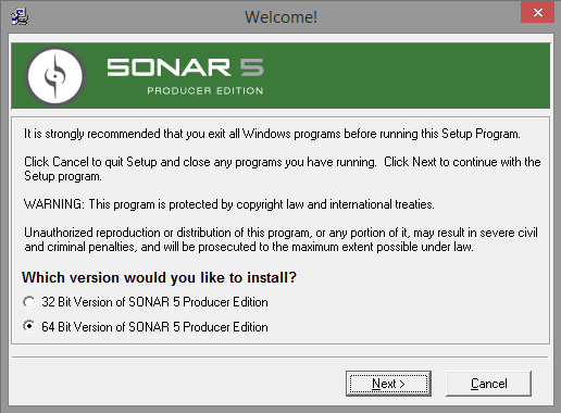 the_user_formally_known_as_glennbo The Cakewalk Sonar 5 disk dated 09/26/2005 offers no 64 bit install, and I have it installed on my same machine as REAPER. The disc of Sonar 5 that I have, released Oct 7, 2005, includes a 64-bit version.