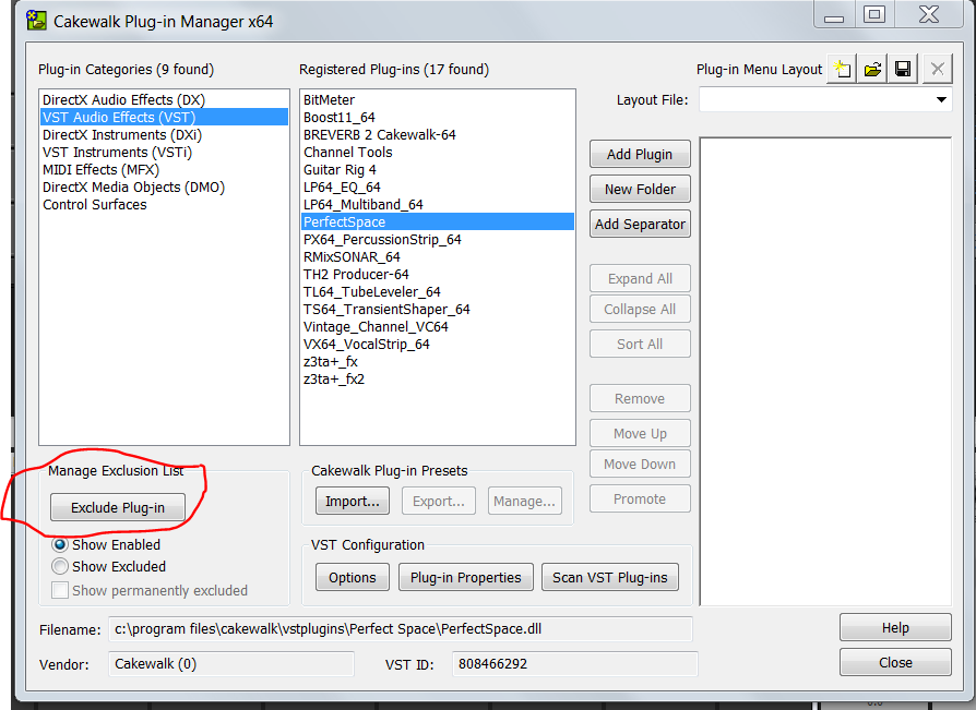 Installed some audio fx vst-plugins. Found that some are never used. Deleted them but Sonar X1 still insists of showing the on the audio fx VST-list. I have rescanned the plugin folders and disable the unwanted plugins but oh no, still there... How do get rid of them?