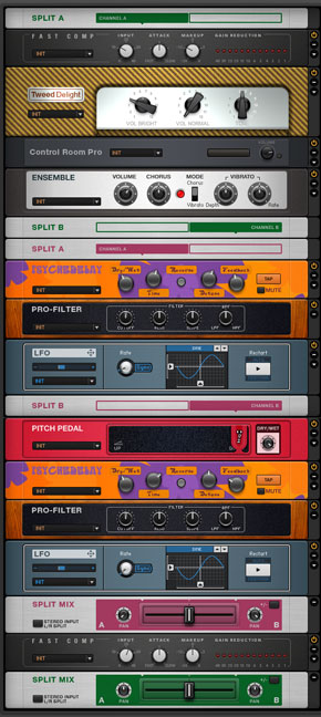 I doubt you're hiding nearly as much as I am. :) Besides which, reverb (in the amounts you typically use) doesn't hide nearly as much as this (which was the actual effects stack I used on my guitar solo in this song):  You call that a rack ? ; ) I would use at least three reverbs, all of them set to 100 % wet ; ) Rik