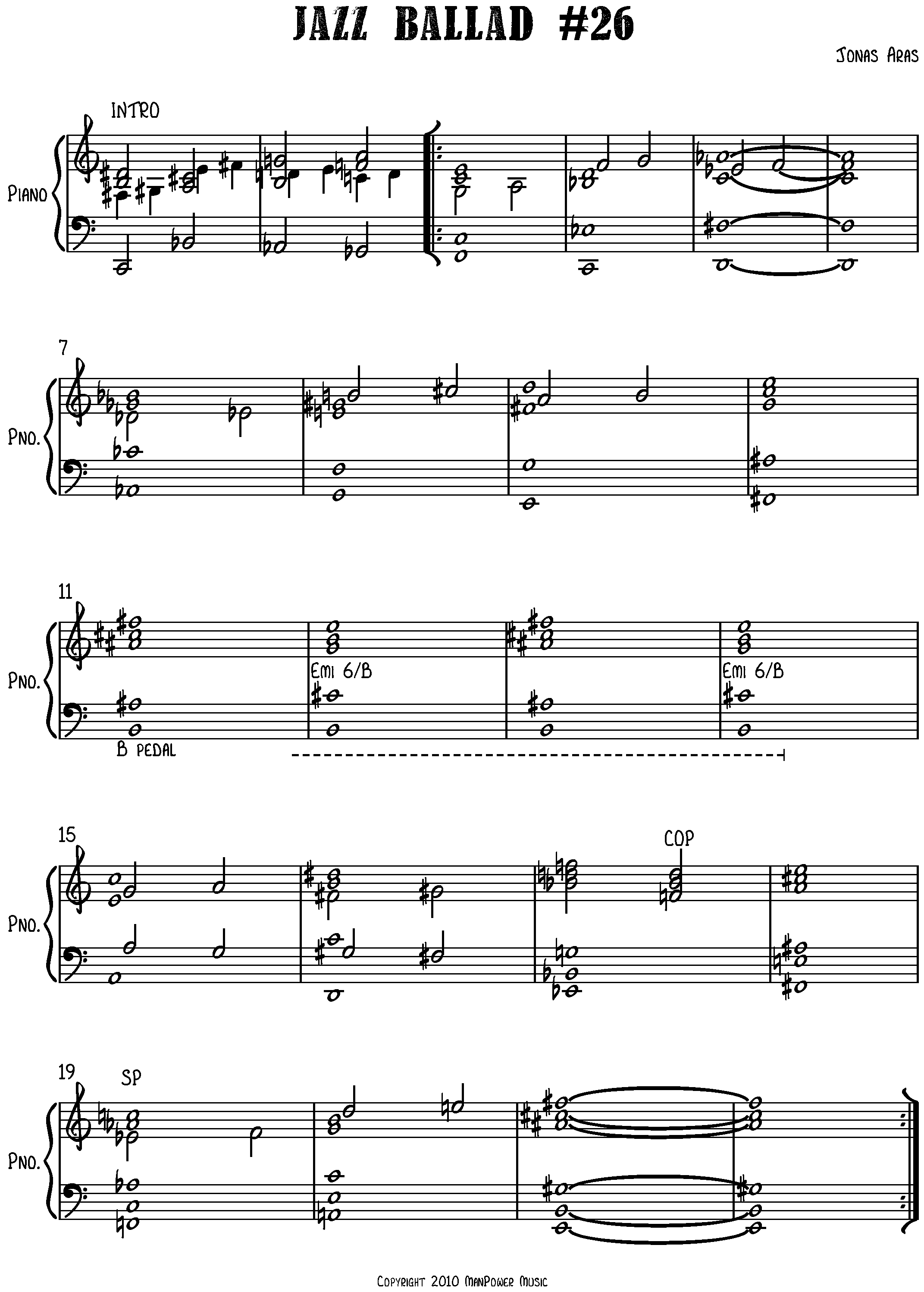 Hi Rus (and everyone else). I think that this score will help you better see the nucleus of where I'm coming from. I wrote this ballad as a bit of a musical puzzle and it's reminiscent of things that Herbie Hancock used to do back in the 60's. The introduction, measures 3-10 and measures 15-22 should be analyzed until you see the pattern emerge. I'll give you a hint; analyze just the top voice and see if a pattern develops. MP3 audio: http://tinyurl.com/9kqcsx6 Score: