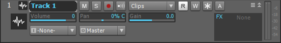 Note that the little icon next to the track number has changed to two crude waveforms and that denotes that the track is now a stereo audio track. That happened purely because I chose a stereo input as the input source.