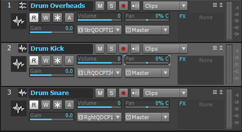 I could, at this point, create a Folder, call it Drums, and place my three tracks into the folder, just to tidy things up a bit. But I will leave that for another time.