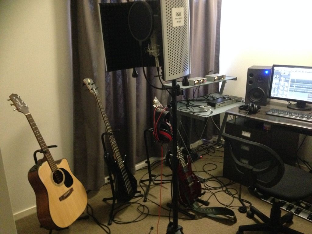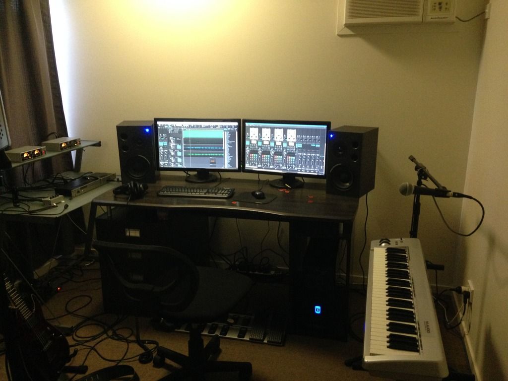 My old studio in the pic, now I just use a comp with a 60" and 58" monitors but in the process of rearranging my gear again:/ latest project, working on new album already, heavy rock/metal this time lol.