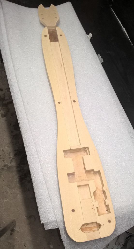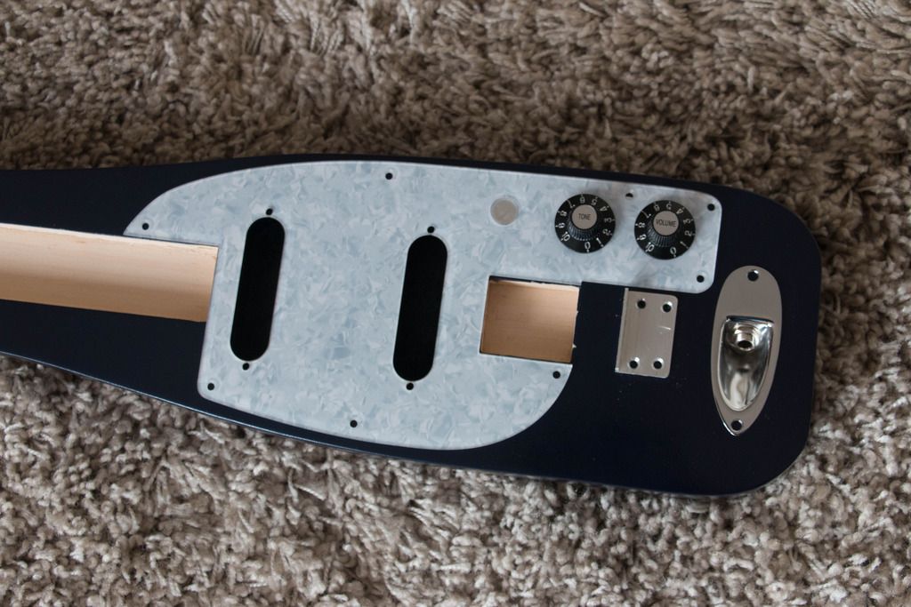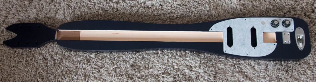 This one will have twin pickups, tone and volume controls. It will have six strings in three double courses, but the tail and nut will also accommodate a four course arrangement.