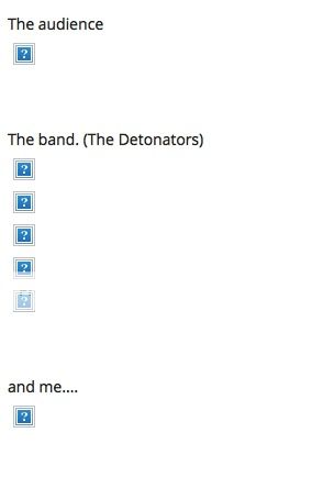 The poor girl got in a flap on the second day. There were two bands, we were waiting for the "headliners" to show up for sound check. She'd been told the drummer was always last to turn up and would most likely be late. So when the drummer turned up first she assumed the rest of the band were already here and had got lost.... She spent half an hour searching for them. They showed up a short while after she realised.