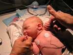 Thank you everyone. Mum & Dad and baby are fine (considering it had to be C section 2 weeks earlier, he was breach). The hospital is about 5 miles from here so I'll see him later today. Here is the little fellow sucking on his grandmothers finger and pulling his Bapu's finger (I think Mooch told him to do it).