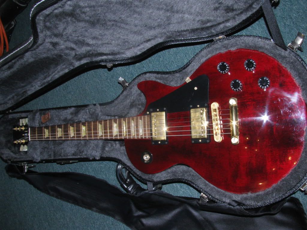LOL Im always home, well about 98% of the time. I believe it is the Glossy Wine Red Studio. Hard to really tell from the picture but the guy bought it from GC and blew up his amp and didnt want to get another and doesnt play much so decided to sell it. Also included is the nice Gibson Hardshell case and a Schecter which I wasnt to concerned about but I made him include it in the deal. Ill post pics once he delivers and it checks out. Ive got to check it over real good once he arrives by the Receipt from GC and for the usual fake Les Paul things. What hes explained to me so far sounds good but gotta verify it all first. Id like it to be a standard but as good of a player as I am (very little) Ill settle for the studio at the right price for now.