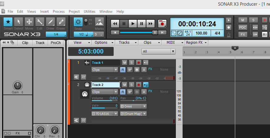 A few weeks back, I encountered an issue with no sound in my Sonar X3 template. This seems to have been relieved. Here's a summary of the progress involved, as discussed in this Forum thread. ------------------------------------------------------------------------------------------------------------------------------ EARLY MAY: ISSUESonar template created and saved with 12 tracks and no data. No sound heard from drum tracks. --- Later noticed no sound from all synth tracks (rather than just drum tracks). Sound would return upon insert of new track. 5/12: FOLLOW-UPA fellow Forum user tested the template; confirmed audio was heard. Believed the cause was no instruments set on some tracks, but still no audio heard. 5/15: OBSERVATION #1 & FURTHER ISSUEIdenitified that the Audio Engine button was disabled on startup. Through moderate experimentation, noticed Audio Engine disabling at "random" times. Upon reporting, was strongly recommended upgrade to an audio interface. 5/18: OBSERVATION #2 & FOLLOW-UPTested all of my current projects in progress; all played back fine. Created new template; issue still persists (no sound on any track). Via further experimentation, identified the Audio Engine doesn't enable without data to play. --- After draw of first note, Audio Engine enables and track plays back fine. SOURCES REVIEWEDCakewalk Documentation: The Audio Engine Button--- First paragraph: "When playback is in progress, Audio Engine starts automatically" Cakewalk Forum thread: "Audio Engine Won't Start"--- Post #2: "Audio engine won't start without data to play" ------------------------------------------------------------------------------------------------------------------------------SUMMARYIt was suggested that this issue wasn't worth researching without an audio interface, but I was compelled to continue in the meantime. I was relieved to notice that the Audio Engine truly won't trigger on without data to playback -- a complete oversight of logic and common sense. I'm in no way negating the need for an audio interface. I'm just merely noting that, hence the previous paragraph, I seem to have identified/resolved the problem -- at least part of it, or the blatantly obvious. :) REMAINING QUESTIONSHow is it that the Audio Engine button doesn't trigger until the track is played? Shouldn't I be able to insert a synth track and hear the notes outright when sampling them from the corresponding Mixer window? I swore I was able to do this in MC6 without having to play a track to enable the sound. AUDIO INTERFACEOver the past few days, I have researched different devices, two of which are available at my local Best Buy. They are by M-Audio and Focusrite, per this link. Can anyone offer any opinions on these? The reviews look pretty promising. In the meantime, I feel a renewed sense of confidence and I'm going to continue working as usual. Thanks to all who participated and I look forward to further suggestions on anything mentioned here.