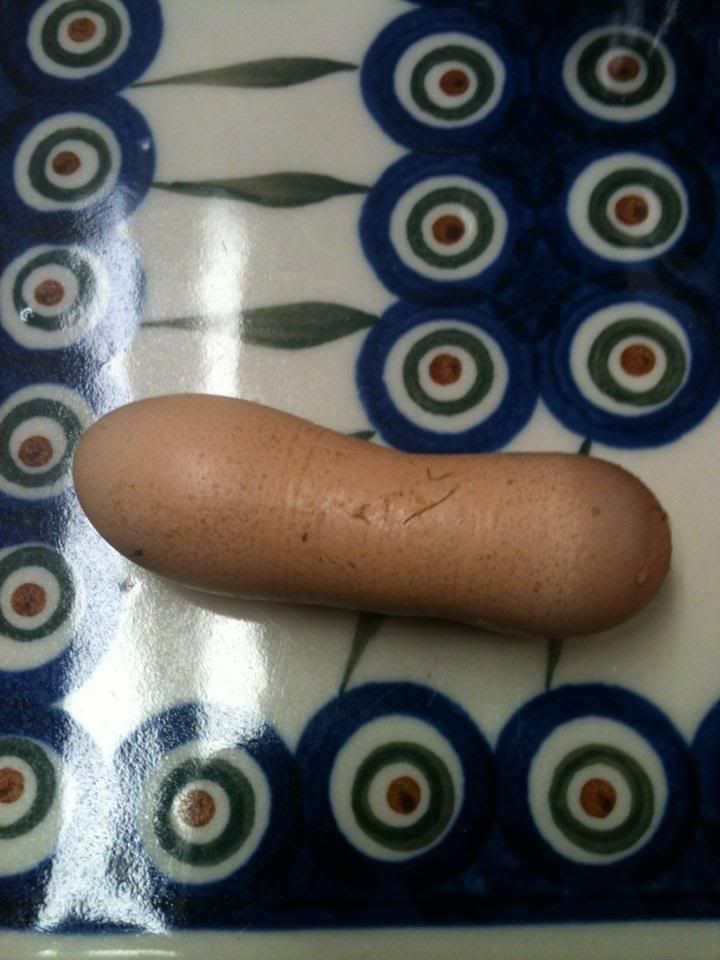 I have found a few eggs that were the size of robin eggs, and a few that were so big..... I eve asked them which one of the girls laid that one. I watched to see if any of them were walking funny.....
