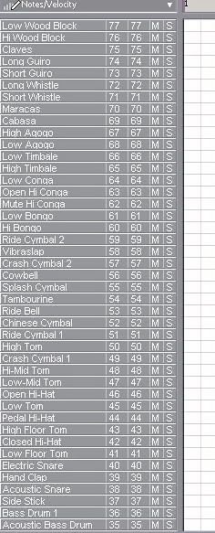 A quick example of a drum track created in the PRV using the GM Basic Kit drum map. Took me all of 4 minutes. A note to anyone not using a GM device and wants to use the drum map with the names of the drums and everything: you don't have to hear it to write it. A short 1 or 2 measure beat should be easy to write, and being MIDI, you can change the speed to suit your song before you start to record audio. After it's written, groove-clipped and looped, you can change the output to your favorite soft synth.