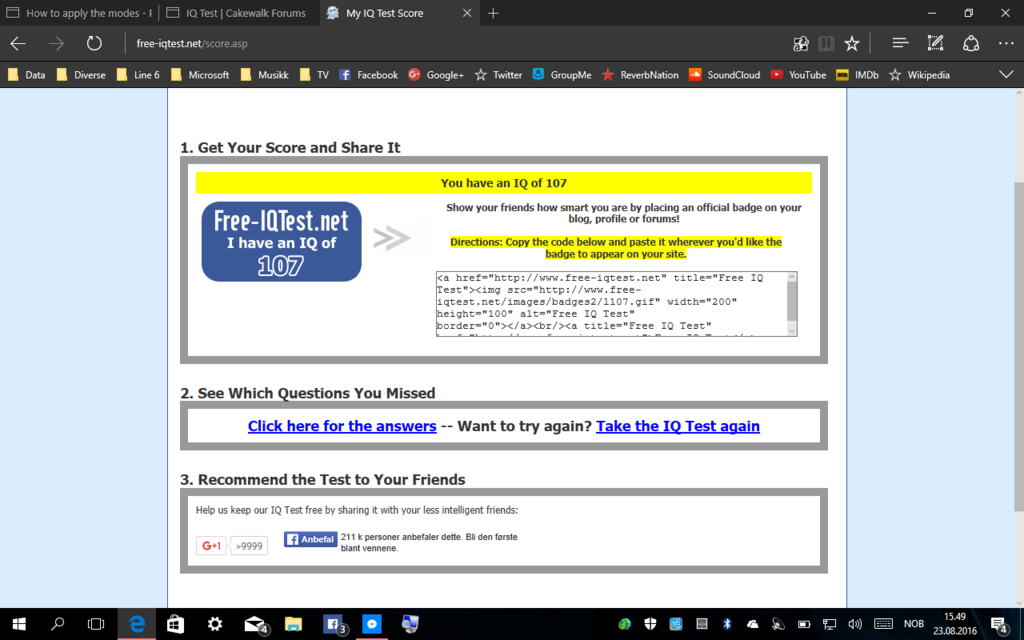 You ought to take the IQ test on the weather page instead Ed! Then your "IQ" will rise over the next few days.