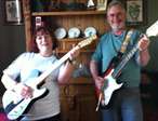 I see Karyn is "bending" the neck in search of the slightly sharp Am. The Bouy on the other hand has that whammy bar at his disposal. He don't need it it seems. Great pics. Now for the link to the song please.