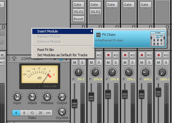 Steve: It's really amazing how long I've been away. Some of this stuff is second nature to you guys who have been around the X products :) I figured that as much - so I opened the Pro Channel and when I insert a module - the reverb doesn't seem to be an option. I got a compressor, EQ, and 'Tube'. Seems a bit unintuitive to me that I can't select what modules to load into the PC. Of all of the ironies, my Waves plugins are working perfectly fine. You'd think they'd be giving me attitude, not the Lexicon and my PC modules. -D