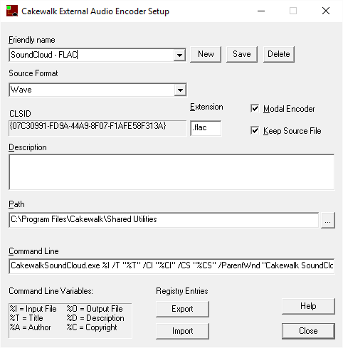 I think I might have stumbled upon issue CWBRN-45857, it seems that the Cakewalk External Audio Encoder Setup doesn't save the Source Format right when I enter a new external encoder... I know because when I hit "Keep source file", I see a FLAC file has been made in the output directory, but I specified '"Wave" in the encoder setup :-S Unfortunately, I can't find anything on CWBRN-45857, what is the workaround? Thanks very much in advance!