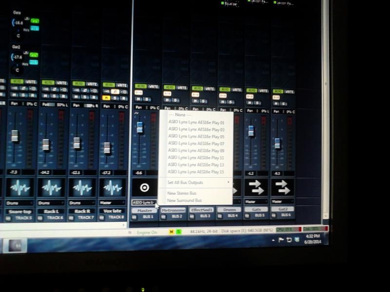 Cactus Music Just a note, I just looked on my laptop which shows Timing Master as Tascam 03. Not 01 ,, but it works fine. So that's not the problem. And my Master output bus has Tascam 01 , Tascam 03 or Tascam SPDIF as output option. The Tascam has 16 ins and only 4 outs plus SDIF. Yours seems to have 16 outs ..correct? But your terms posted: AES16e Play 01, Right ASIO Lynx Lynx AES16e Play 01, or Stereo ASIO Lynx Lynx AES16e Play 01. Seem like your looking at inputs and not outputs or something strange. But I guess each driver dispalys differently. Mine just says a very short group of words as I've made bold above. The same goes for my Scarlett which I think say's Focusrite Mon 1. etc. Anyhow just something to ponder. I just find it weird that if the Sound cards 01 outputs shows in the Audio options/ Advanced output list that it would not show as an output for a Bus, that's almost imposible.