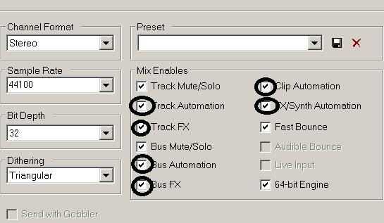 Is this the correct way to export a track without using any effect (no PC, no effect bin, no automation).
