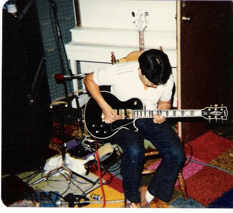 Bub djwayne Gold plating wears off easily no matter what you do. This is why chrome plated hardware is popular amoungst seasoned pros. I haven't had that problem so I'm not the one to answer it. The guitar is 31 years old and none of the plating has worn off yet so I don't buy in to the pro's preferring chrome idea. It boils down to how well the person playing it takes care of it. Got my answer on-line. Thanks. You must have a good one, Bub. The guitar player in my band in California bought a triple pick-up LP with gold-plated hardware new in 1976. By the time this picture was taken (ca. 1980) a lot of the gold had worn off. But he played it a lot. I mean, every waking moment.