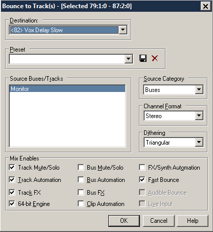 Re: Bounce two mono tracks to stereo track - ignoring source levels, panning... what is wr