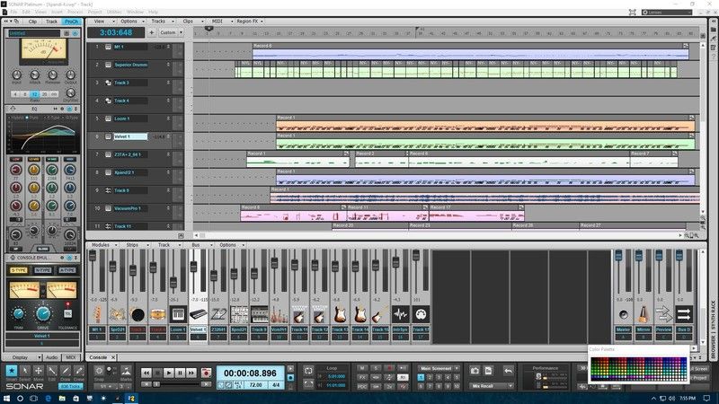 Windows 10/64, Intel i7 Xeon X6575 3,07GHz, 24Gb RAM, chipset: Intel X58 Express, Kingston SSD 240Gb, Sonar Platinum ∞, Edirol UA-25. ( Some extra VSTs: PSP almost all/ IK - AT4, ST3, / AAS - all/ TH3 full/ +10dB/ Melodyne Editor). EVE sc205 monitors, Defil Kosmos guitar, blue lava lamp, ashtray. And there is some great music you may find at: https://soundcloud.com/pawel-jan-1