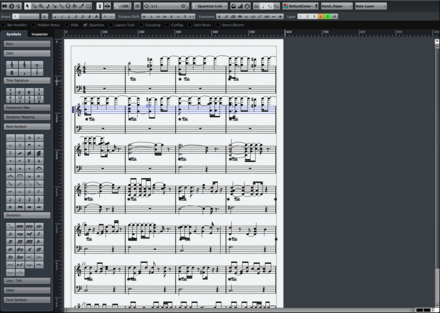 Score EditorThe Score Editor is a professional notation environment with full support for just about all symbol, display and editing options that this entails, including support for lyrics and remarks as well as drum notes, guitar tablature and lead sheets. Simply select the tools needed to create fully professional score layouts for others including soloists, orchestras and choirs. The Score Editor includes more than 100 professional notation symbols and supports the import and export of Music XML files.