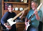 'Bird' is pretty much deprecated as a term, like chick, but many people my age still see it as endearing. And here's a picture of her and myself and if the look on my face isn't spelling out the thought '"cheeky bird" I can't think of a better definition. Karyn took this one which is why it's 97.363345% better than my earlier effort...  It also shows the new Tele a bit clearer.