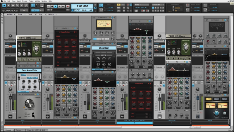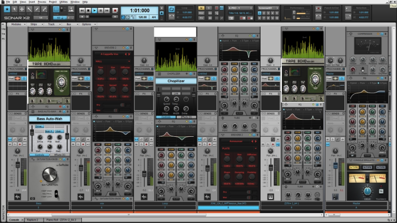 SONAR X3C PE , Windows Pro 8.1 64 BIT I7 2600k, Gigabyte Z68MA MB, 8 gigs Ram Corsair SSD 240, WD ,HD 150GB VelociRaptor, Roland Quad capture, Mackie 824 M2 Yamaha S90 keyboard, Omnisphere, Trillian, kontakt 5., Zebra HZ Diva, Addictive keys.