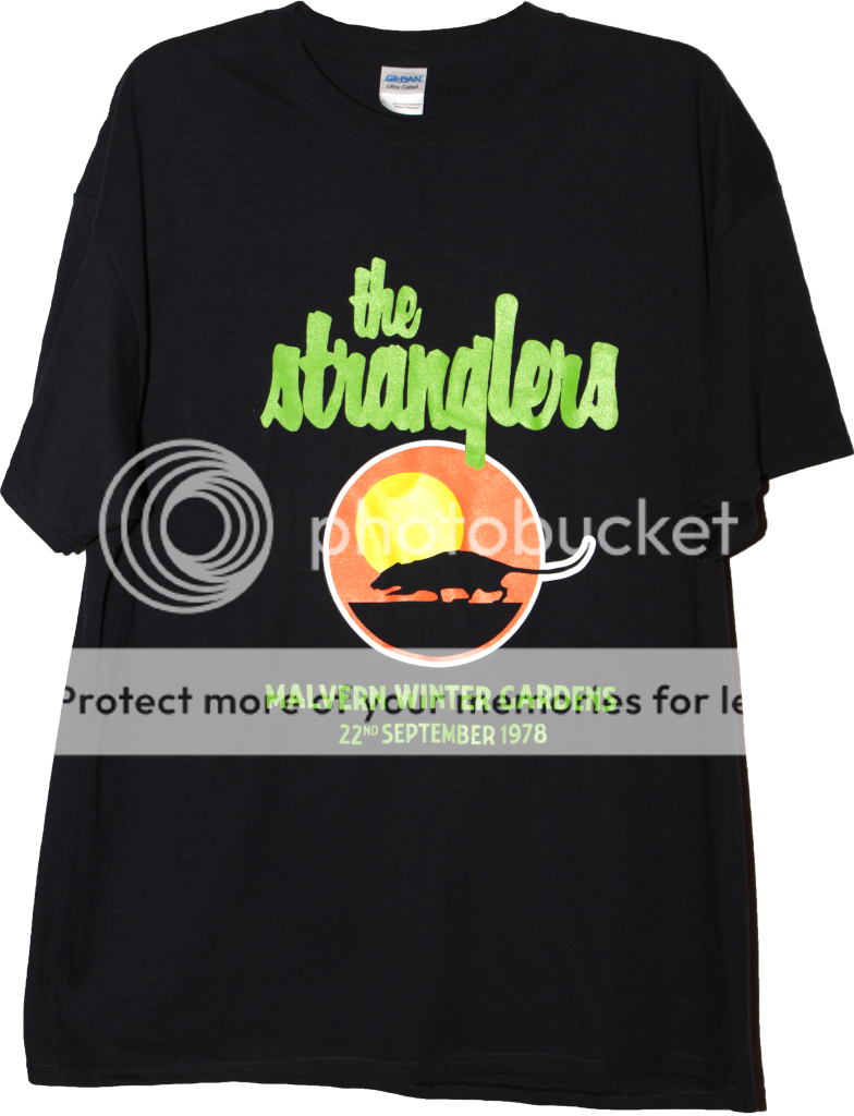 I took delivery of four T-shirts today I'm off to see The Stranglers in March with my mate Al. They're performing a series of gigs to celebrate 40 years since the band was formed. As I last saw them 36 years ago, I thought it would be a nice touch to wear a commemorative garment from that night! I asked my pal Ed if he could print the designs I sent him, and I have to say, he's made a truly wonderful job of them. He made two for me with the designs as shown below, and one each for Al and my lad with just the main graphic on the front. Feckin' marvlious