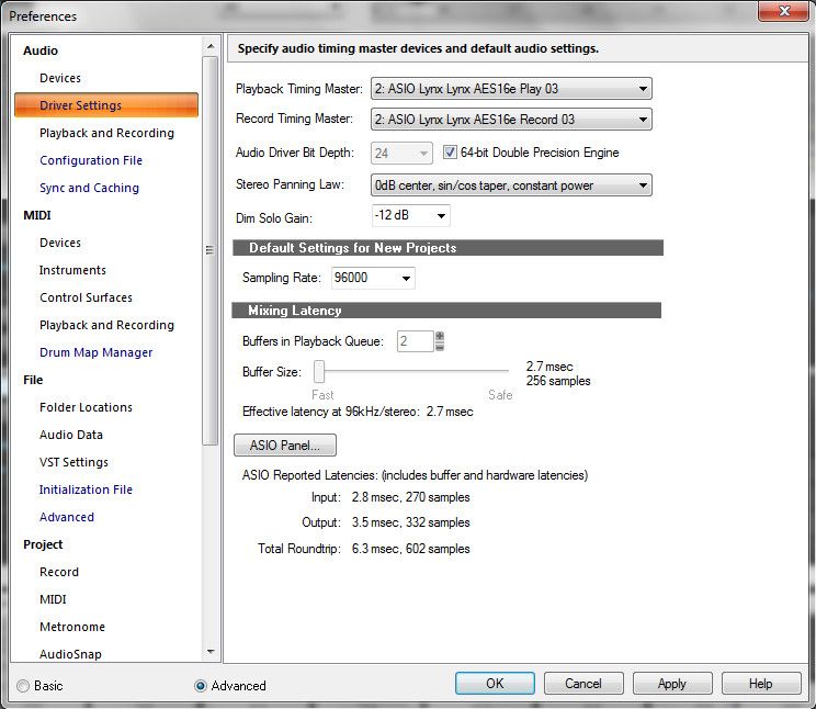 http://www.cakewalk.com/Documentation?product=SONAR%20X3&language=3&help=Dialogs2.056.html As Noel mentioned, be sure that "Advanced" is checked at the very bottom of that window or "Sync and Caching" will not be visible on the left edge. However, the suggestion of an internal drive is highly recommended (7200rpm or better), since many USB3 external drives I tested (especially early on) did not come anywhere near USB3 speeds. And if you are plugging a USB3 drive into a USB2 port, you are only going to see USB2 speeds from it.