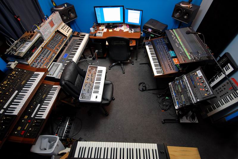 scotteh Ken, MIDI is done with an m-audio midisport 8x8 (in the rack). Long cable goes from the m-audio Keystation pro all the way around the front of the room to an input on the front of the midisport then another one goes all the way back around to M3m (it's now a moog Voyager RME and the M3M moved over to where the microkorg was). That whole stand with all those synths, creamwares, plugiator, SEM-pro and now the Voyager as well are all on the same midi channel so that all I have to do is turn up the volume on the one(s) I want to use. The synths in the rack get their own midi ports since I have extras. In the rack is Moog Slim Phatty, Roland Super JV-1080 with Vocal card (LOVE the choir sounds!), Midisport, Roland M-GS64 (just put it back in for some drum sounds but it has a ton of other good sounds too), Oberheim matrix 1000, Alesis Midiverb 4 (Slim Phatty going through this) , Alesis DMPro (dead at the moment, nothing but a clock-like clicking sound at the output), Lexicon MPX-100 (OB-8 is going through it for chorus and flanging sounds) and a Behringer Composer compressor I'm not using at the moment. I'm sick of compression and don't do very much any more. I REALLY miss hearing DYNAMICS in music. There's also another midi in coming from whichever synth I have on that chair. Usually the Gaia SH-01 or the D-50 or for a while it was the Polaris after I got it. That gives me a synth keyboard I can play instead of the heavy weighted keyboard (I have short, weak fingers and went 20 years without a weighted keyboard so sometimes a synth keyboard is MUCH easier for me!!). Or I could take the MIDI out from the OB-8. Generally the OB-8 is stand-alone and I just play the keyboard. You can't sync the arpeggiator or LFO to MIDI so it's a bit limited in that sense but it's still my go-to keyboard since everything is right there on the front panel. Love programming that thing! (synths in closet are Sequential Circuits Sixtrak. Yamaha DX7-IID, Korg O5Rw, TX81Z, K1r, a couple of others I think) No MIDI at all for the 2 Yamaha synths, of course. Now that I have the 40m I don't use the 20m much but I do have volt and trigger cables going to it from the 40. Works like a charm! Kinda cool to use both at the same time. They have a slightly different sound than everything else which is useful at times, especially the analog ring modulator on the 40! (Although the Voyager does ring mod sounds amazingly well considering it doesn't have one!!) As for syncing everything up... I don't. I just record one thing at a time and build up my songs that way. I get an idea, record it, add more sounds one at a time. I actually rarely use midi sequencing other than for the drums which obviously need to be pretty close to perfect and the occasional sequence. I play everything live on the keyboards. I really dislike music that is robotically perfect. Subconsiously we always know that it's not played by real humans, it's just too damned perfect and just doesn't have any human feel or soul. My timing is getting better and better but I still prefer to be off just a little bit because it just sounds... friendlier. More alive. I'm also hoping to do more stuff with free time, less rigid. I'm still extremely impressed with Tomita's music and how he did that kind of thing. So I don't really do much syncing or sequencing at all. If it's not close enough I just delete and play it again until I get it right! Scott www.scottfromcanada.com That is funny that you use the midisport 8x8 for your midi stuff. I had one of the original green and yellow meanies. I upgraded the eproms and did everything I could to keep that evil thing going. It gave me constant problems till the day it died. It now rests in my equipment graveyard. I am glad you have had better luck. I scrapped it for a MOTU midi express XT and things have been much better. I maxed out all my midi. The devilfish TB-303 and the TR-808 don't do midi but I have them sync'ed up on the sync ports using an MSQ-100 which can take in midi clock and turn it into sync. The Venom can do midi through USB which is nice. I have to say the Venom is a pretty nice synth for the money. If they made the control program a VST and made the arpeggiator easier to edit and play with it would really be a winner. I definitely know what you mean about being a bit wary of just clocking everything up and letting it go cause it can be robotic. When you are using an 808 and a 303 they are sort of robotic by definition so it depends on what you are doing. I like to keep the arpeggiators all going in time though. My Virus TI2 is a brand new addition and I LOVE the arpeggiator on that thing. In general that is one of the most intelligently designed synths I have ever used and the keybed is really nice to play on. I have a Privia PX-130 that I use just to have a portable 88 key keyboard to practice on when I am going to be away from home. I also have another Venom keyboard and a circuit bent TR-606 that is not out cause I just have no space for them right now. I have a couple of DBX compressors in my rack but don't use them much anymore except for the TR-808. I have a couple of Lexicon LXP-1's and 5's that I used to use but don't patch them in much any more either. I had two MRC's to control them but it just wasn't worth bothering with after a while. Ken
