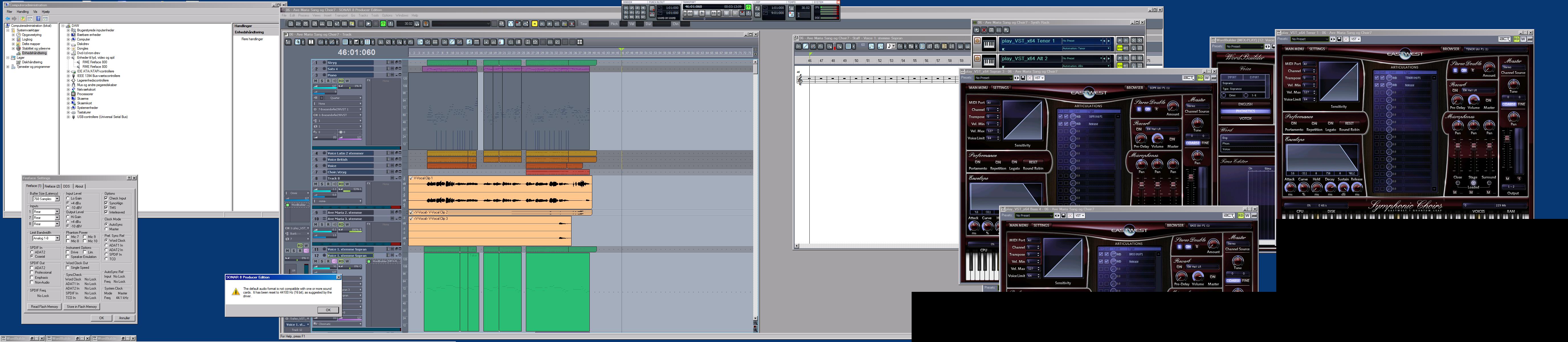 The 2 units are in sync. They are connected with a BNC cable and a LED on the frontpanel says that WordClock is ok. Regarding onboard soundcards it is disabled in the BIOS and the Computer management as well as Sonar/Audio Options/Drivers show that there are no other soundcards than 2 x FireFace (see pictures). I did try a few days ago to enable the onboard soundcard, but still got the same error. And I forgot to mention that I have Memtested my memory for half a day and it was ok.