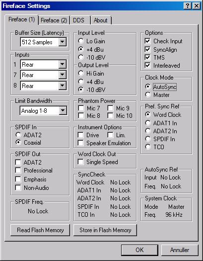 I changed the SystemClock in FF panel but I still get the same error and the sound is pitched 1 oct. up. And no matter which samplerate I use in Sonar I get this error in ASIO mode. In WDM mode I get this : The default audio format is not compatible with one or more soundcards. It has been reset to 44100 hz(16 bit) as suggested by the driver. And trying to change the bit width to 24 causes this error again.