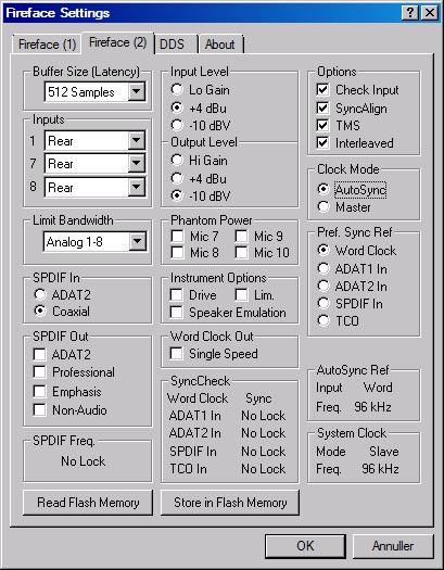 Also, can you post a screen shot with both Fireface 1 and 2 settings. To me, it looks like they may not be synced from the first screen shot you posted as a link.